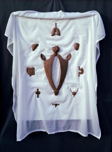 Walnuss mit Stoff